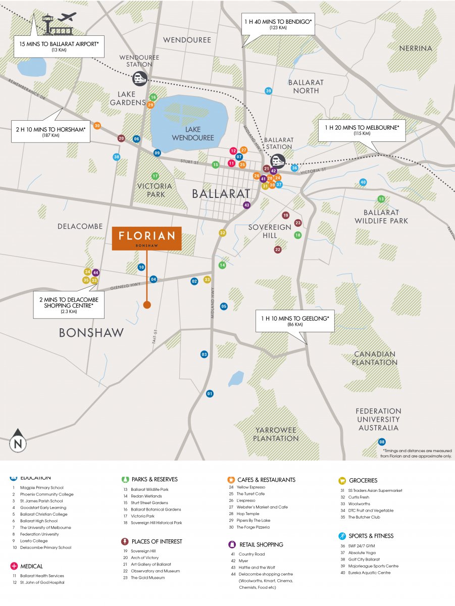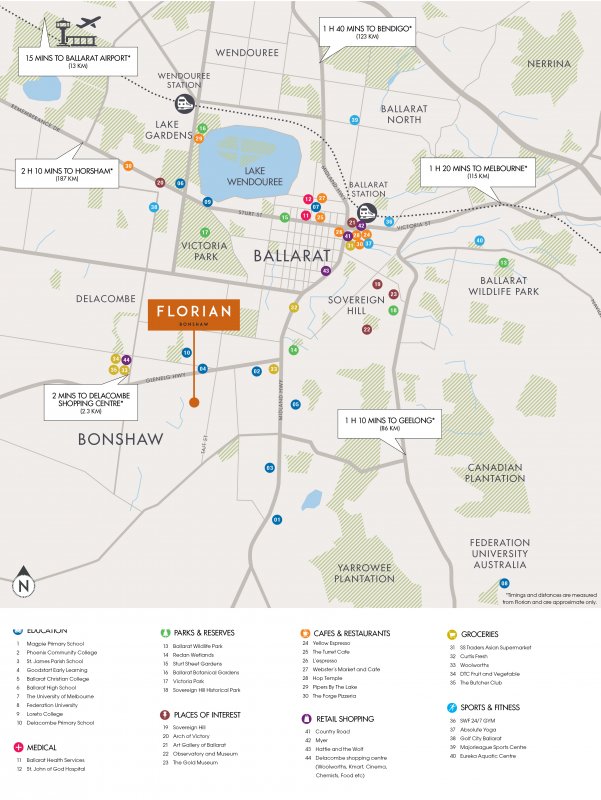 Florian is ideally located within easy reach of Melbourne, just a 1 hour and 20 minute commute away. The growth is set to continue, with the State Government pledging to spend one third of its $6 million rail budget on the Ballarat line. Convenient access to the freeway for drivers makes a commute to Melbourne for work or a leisurely day trip a breeze.